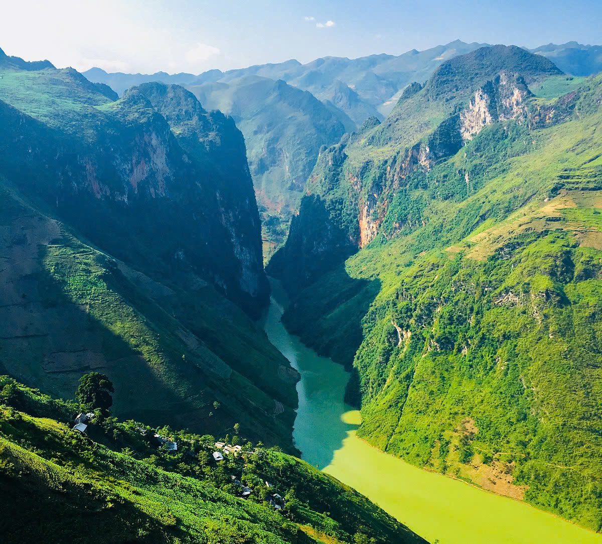 Start the day with an early breakfast at 8:00 AM before heading toward Ma Pi Leng Pass, the most famous and dramatic section of the loop. This pass, known as the “King of Passes,” offers stunning panoramic views of deep valleys and towering limestone cliffs. Below, the emerald-green Nho Que River snakes through the mountains, creating a picture-perfect moment.